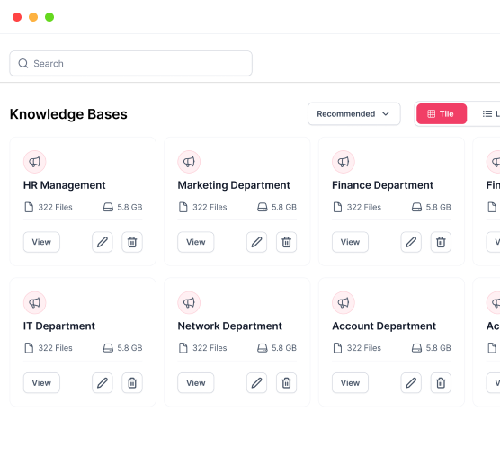 Organize company documents into topic-based knowledge bases so teams can quickly find answers making it easier to manage.